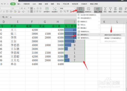 若是我们想要删除这种法则的话,我们选中上方的数据条,然后点击前提格局断根法则即可,这样就酿成本来的数值显示了。