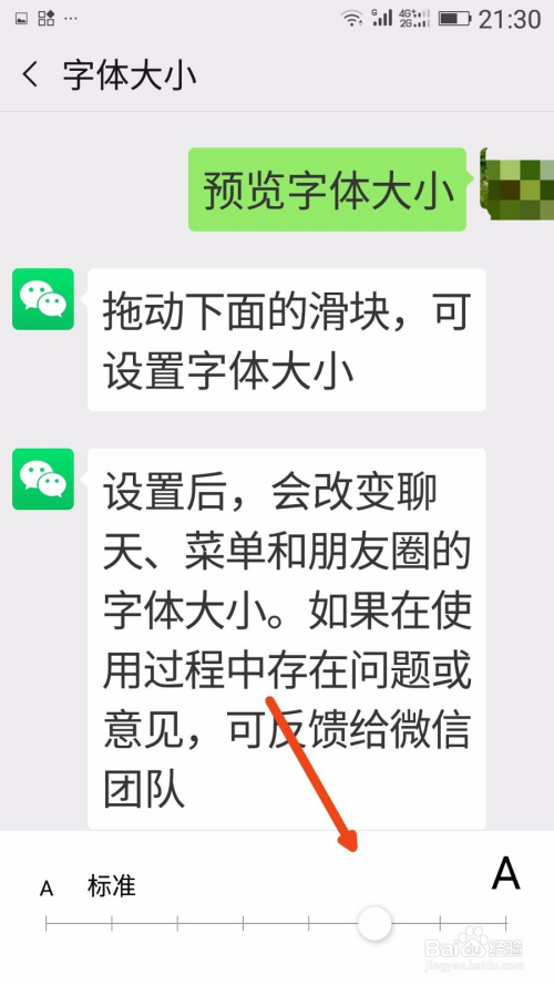 在微信聊天中,有的人想把字体改小一些,有的人想把字体改大一些,下面小编分享一下具体操作过程。