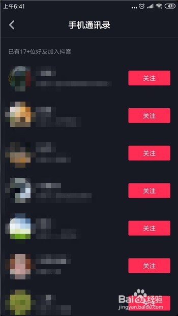 然后即可看到我们手机通信录中哪些老友在玩抖音,点击可打开他的小我本家儿页。