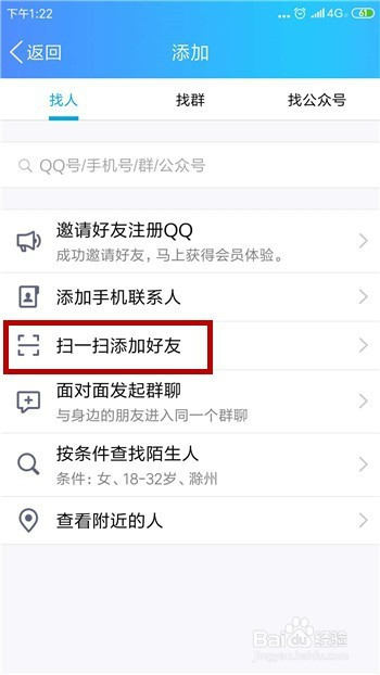 打开添加老友界面可看到【扫一扫添加老友】,点击这个同样能打开扫一扫界面。