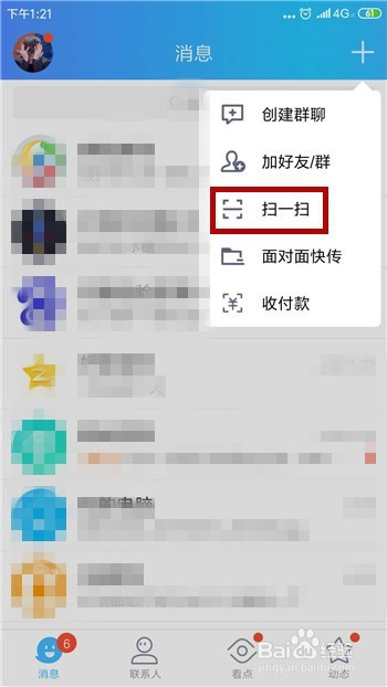点击后会呈现几个选项,点击【扫一扫】。