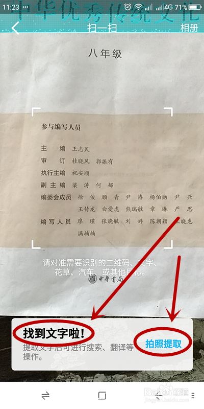 当屏幕呈现“找到文字啦”的提醒后,单击“摄影提取”