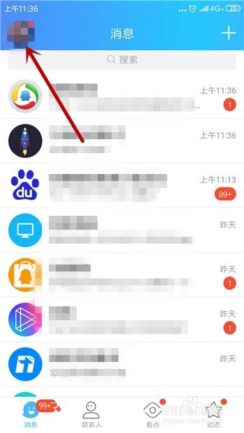 打开QQ后默认的字体大小是尺度的,更改的话点击左上角的头像。