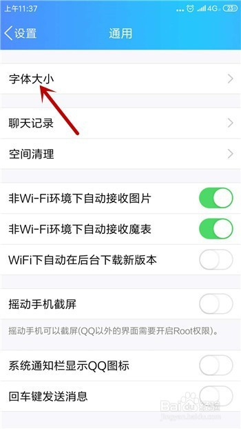 接着在通用设置中即可看到【字体大小】的功能,点击打开。