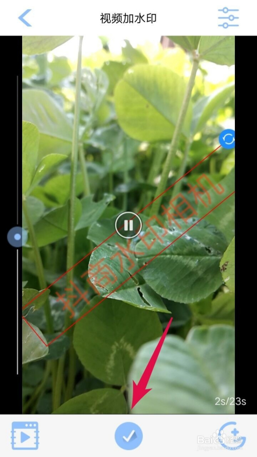 视频上已显示文字水印按照本身的需求再次进行调整,点击√按钮保留。