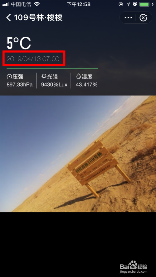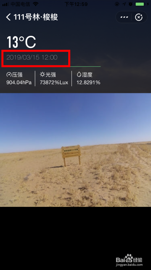 第一张图片显示的拍摄时候是2019年4月13日 12:00,别的还显示那时的温度、压强、光强和湿度。
