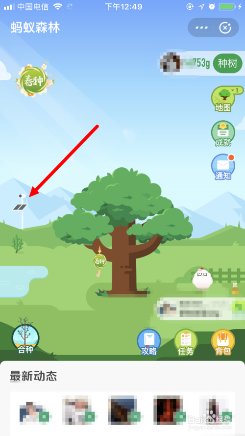 进入 蚂蚁丛林 的界面后,点击下图红色箭头所指的位置。
