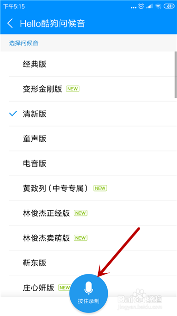 最后返回到选择界面后可看到本身录制的问候音,点击即可利用。