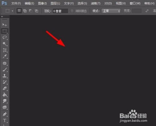 打开ps软件,双击红色箭头标识表记标帜的黑色区域。