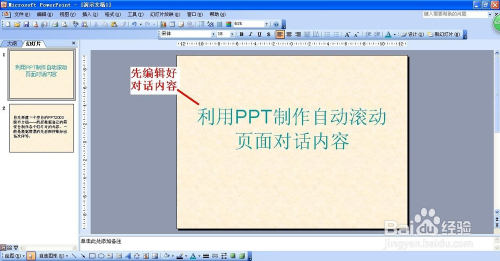 今天小编和大师分享一下如何操纵PPT建造主动滚动页面临话内容,不消我们手工点击查看,便利我们的阅读。下面以PPT2003为例进行申明