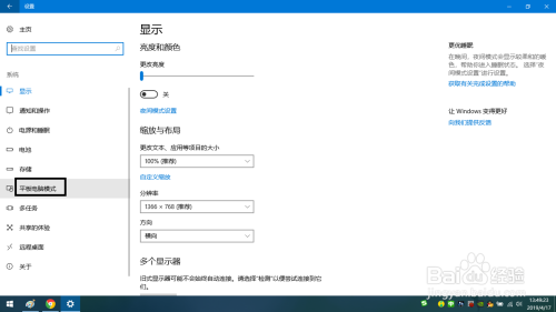 然后进入系统的选项中选择【平板电脑模式】选项。