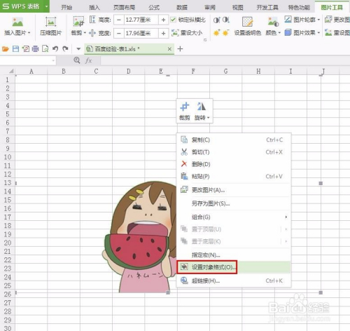 第五步:在图片上单击鼠标右键选择“设置对象格局”选项。
