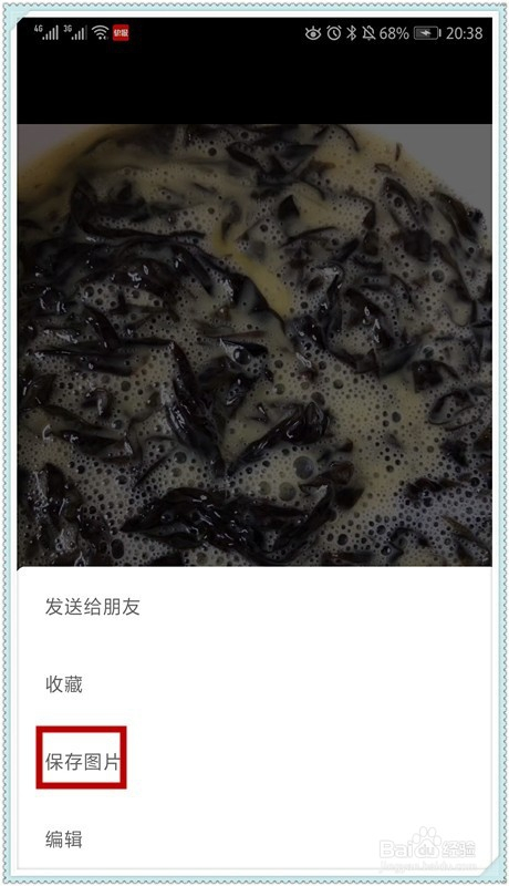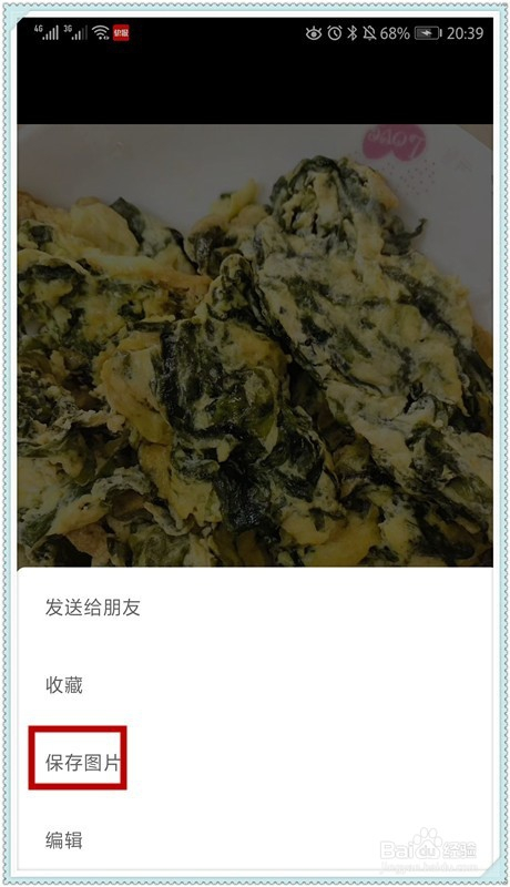 再把他的图片先打开,再长按再保留在本身的手机相册里,如图所示。