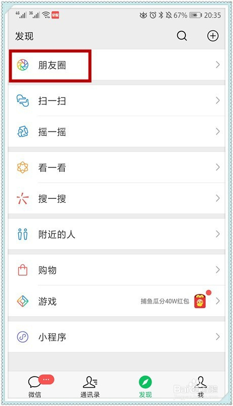 你首先打开本身的朋友圈,再查看别人的朋友圈,看了一个伴侣的朋友圈,很有意思,我们就把他留下了。