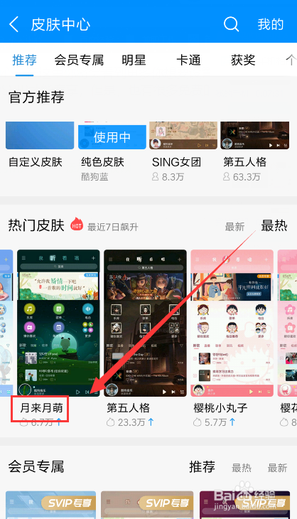 进入皮肤中间,在这里你将会看到更多你想要设置的皮肤供你选择利用,可能有些需要当作为SVIP才能专享,可是,也有良多免费的,如图所示