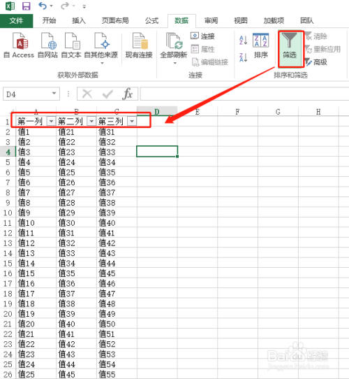 当数据行列内容比力多的时辰,睁开Excel顶部的【数据】菜单,点击【筛选】按钮,这个时辰excel内容的题目行后面会多出一个标的目的下的箭头图标
