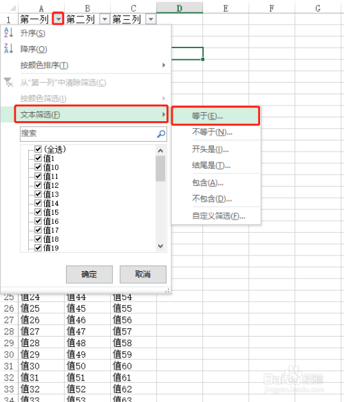 当数据量很大的时辰,建议利用【文本筛选】,这种过滤速度很快。点击题目右侧的下拉箭头,在弹出窗口中,选择【文本筛选】->【等于】、【不等于】等等过滤前提