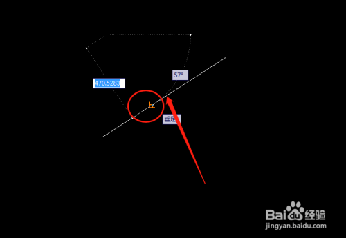 然后点击前面一条直线,上面就会呈现垂直的符号。