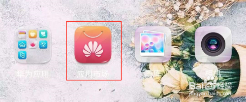 找到手机桌面上的【应用市场】图标,点击进去。如图所示: