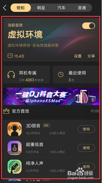 进入蝰蛇音效页面,找到你喜好的音效,如图所示