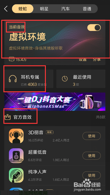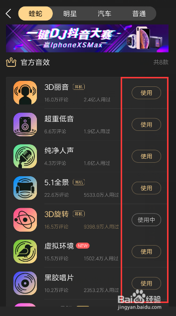 然后,用你发现美的眼睛,点击列表中蝰蛇音效,如图所示