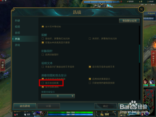 我们在界面的右边里找到【显示进犯距离】选项,把这个给勾选上。