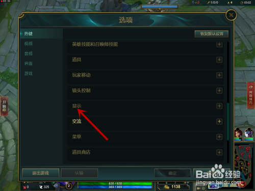 然后在显示中找到【帧数显示开关】,默认的是【ctrl+F】按键,我们按下这个按键。