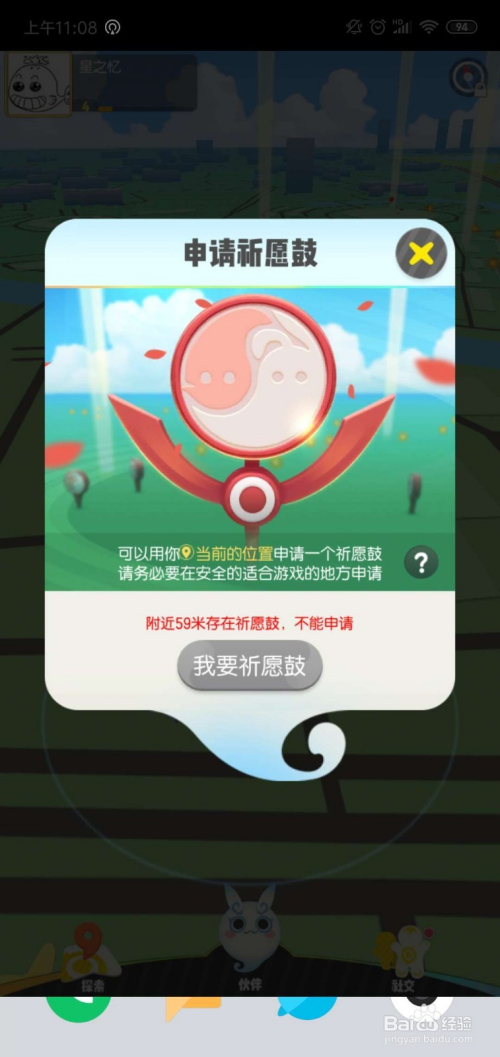 若是四周没有祈愿鼓,我们可以点击左下角的“摸索”——“申请祈愿鼓”,就能申请到一个祈愿鼓,反之若是四周必然的距离内有祈愿鼓,我们就不克不及申请;