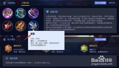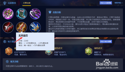接着我们可以出无尽战刃来增添物理危险结果和暴击从而增强百里玄策对线能力。
