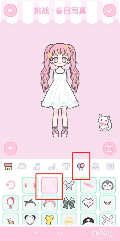 最后换个发型,点击√,提交搭配,当作功经由过程挑战:春日写真