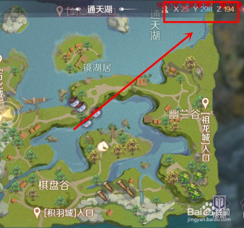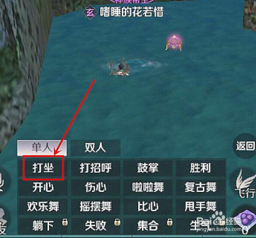 在观光点窜者右侧水中,大要坐标为“x25 y298 z194”,利用动作“打坐”。
