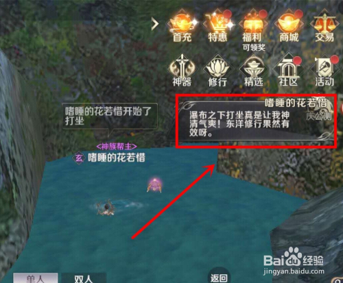 若是界面呈现“瀑布之下打坐真是让我神清气爽!东瀛修行效呀”的提醒,第二环的使命就当作功触发了。