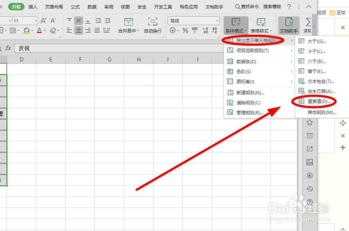 鄙人拉菜单,按照“凸起显示单位格法则”——“反复值”挨次选择后单击