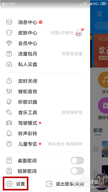 打开酷狗音乐的设置界面后找到【断根缓存】选项并点击。