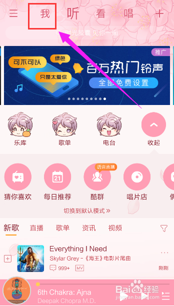 进入酷狗音乐界面,点击上面的我的选项,如图所示