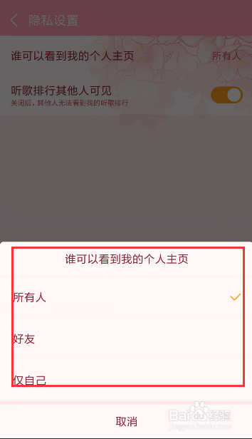 酷狗音乐,设置谁可以看我的小我本家儿页,可以避免本身小我本家儿页信息被看到