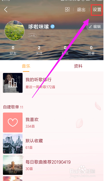 来到账号本家儿页,你将会看到各类信息,点击右上角的设置,如图所示