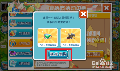 第五步,点击领取礼包之后,还可以点击右边的农耕祝福,领取农耕祝福礼包,点击领取之后,还需要再次点击确定领取,如图所示。