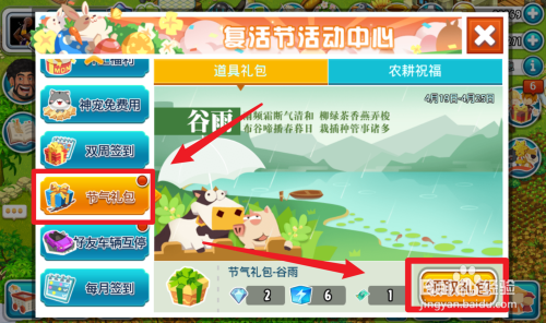 - 谷雨骨气礼包活动时候是4月19日到4月25 日。