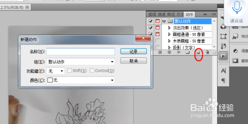 然后会跳出一个小框上面写着新建动作,我们可以给本身的这个动作起一个名字这样就轻易查找