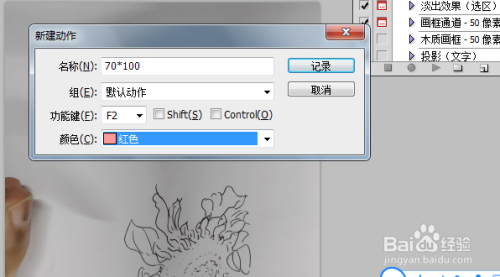 我起的名字是70×100,这也是我要更改图片的大小,设置快捷键为f2,下面的颜色是无所谓的,我就设定为朱颜色,接下来我就对此次的图片进行更改的操作,把图片设定为70像素*100像素的大小