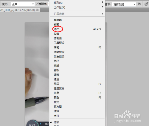 然后点击上面菜单里的------窗口------动作,或者用快捷键alt+f9