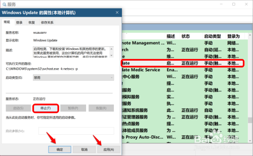 * 在办事窗口中,找到并禁用 Windows Update 办事;