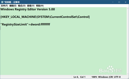 方式二:建造一个【RegistrySizeLimit.reg】注册表文件添加到注册表中。