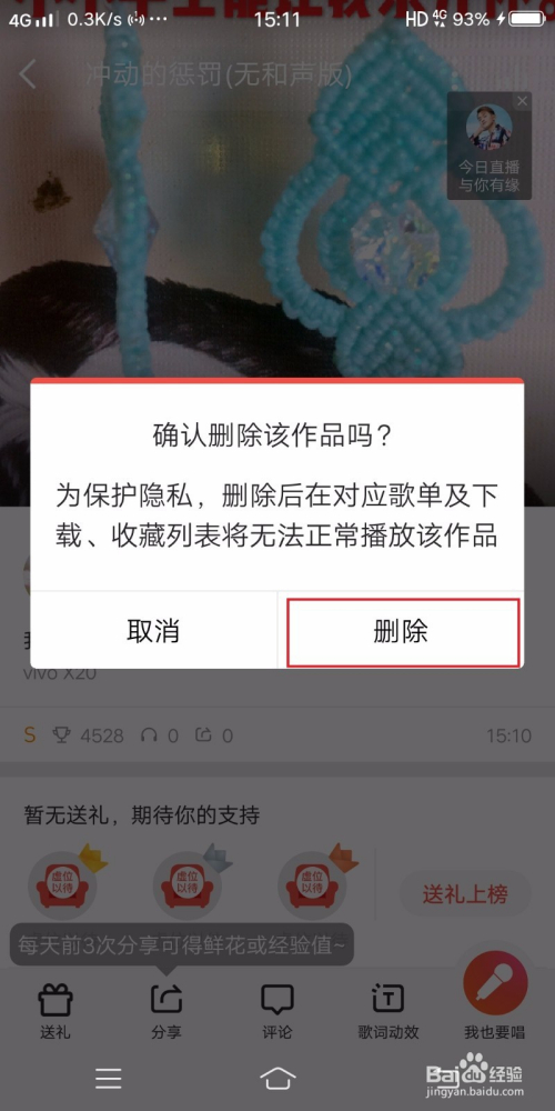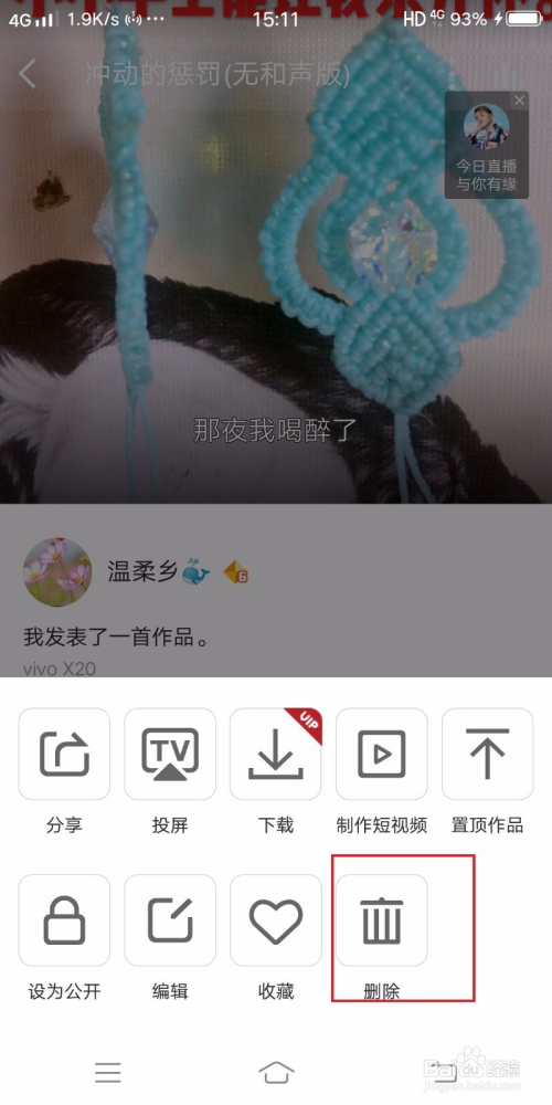 如图,找到本页面的作品点击并将页面上拉,选出本身想要删除的歌曲。