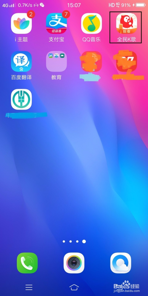 如图,打开手机找到全平易近k歌软件并点开。
