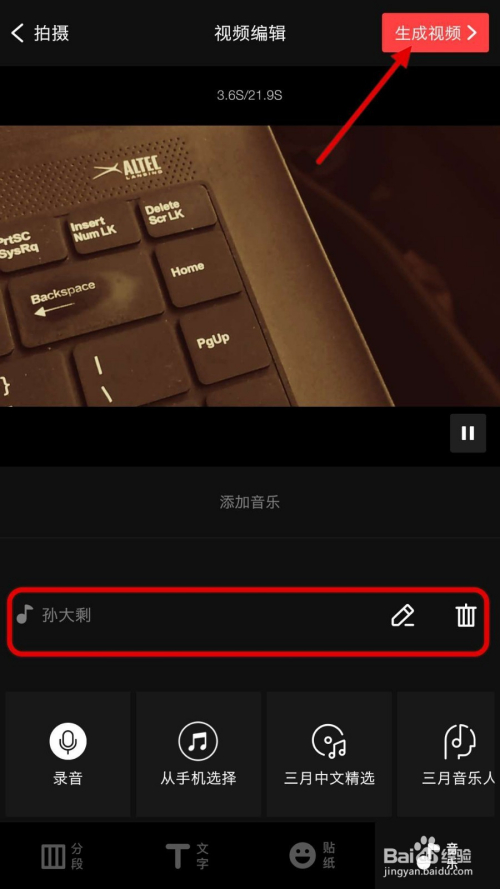 选择好今后,我们就可以看到添加的音乐,点击生当作视频即可。