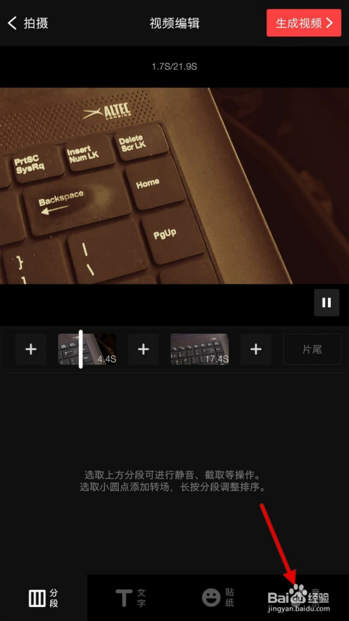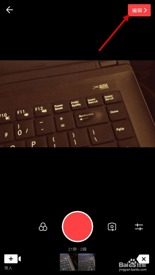 拍摄完当作后,我们点击界面右上角的编纂按钮。