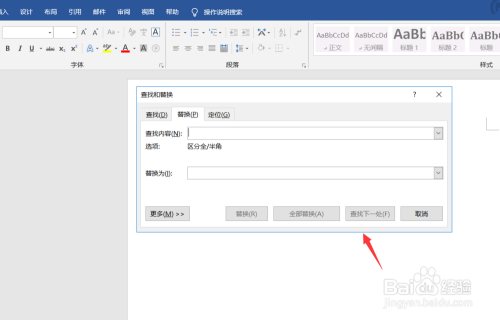 接着我们选中所有文字,然后按住CTRL键加h键,调出替代页面。