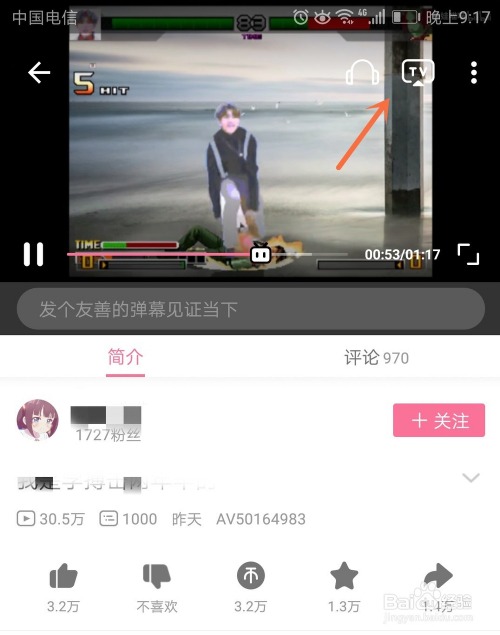 然后就会跳到搜刮设备的界面,然后选中你电视上的那个投屏软件,就能看到投屏到电视上了。